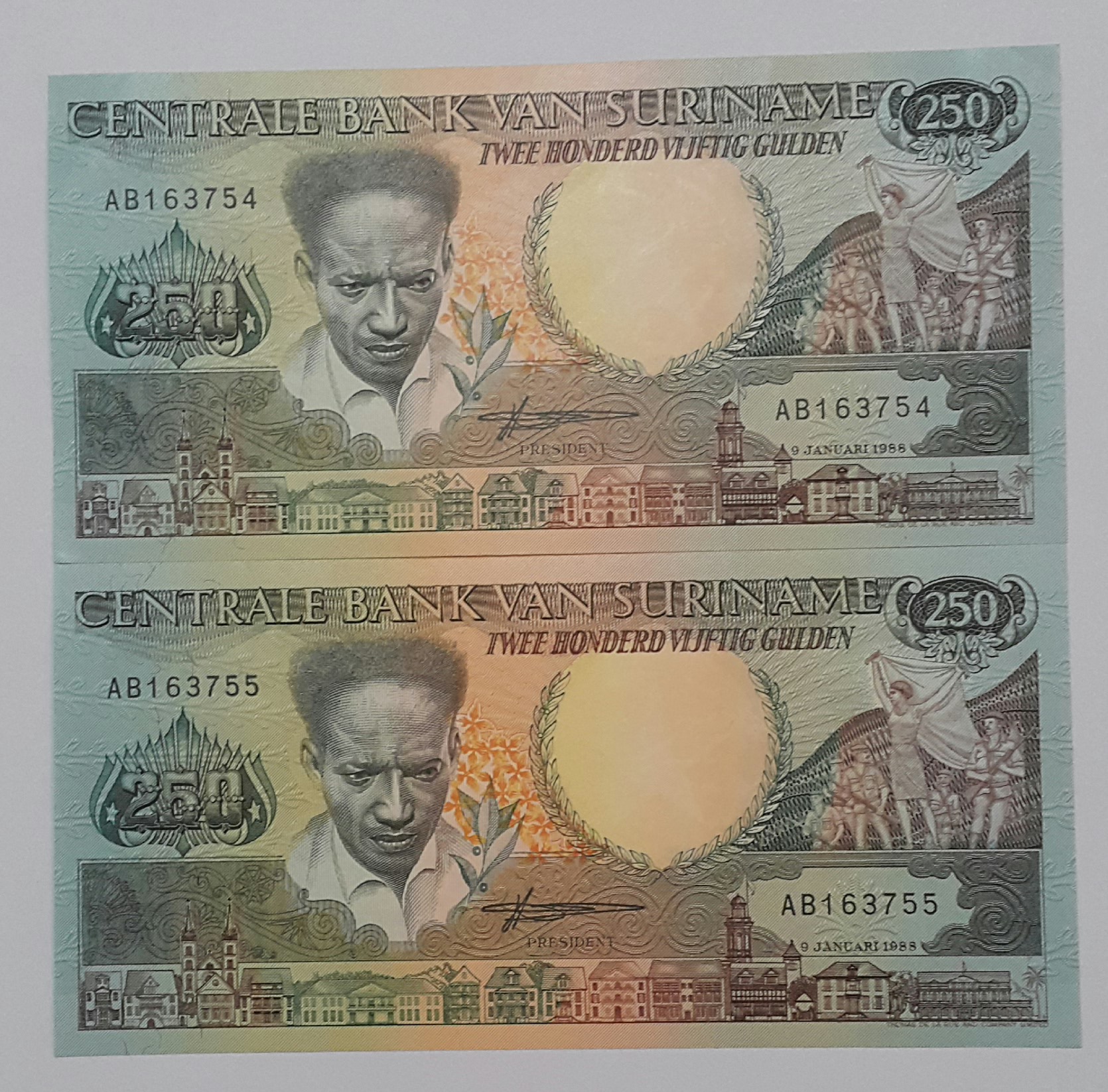 جفت اسکناس 250 گلدن ( کشور سورینام )