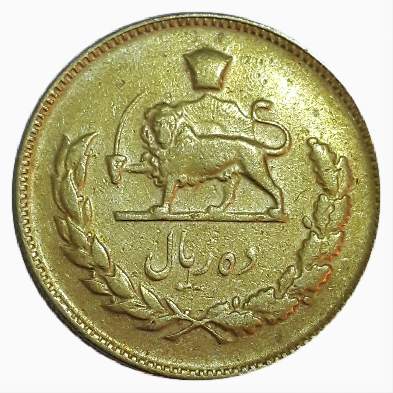 ده ریال نیکل ( آبکاری طلا شده ) محمد رضا شاه __ 1345