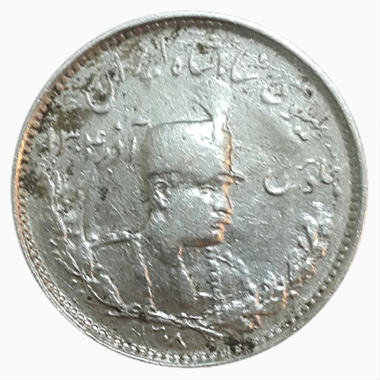 یکهزار دینار نقره تصویر رضا شاه __ 1308