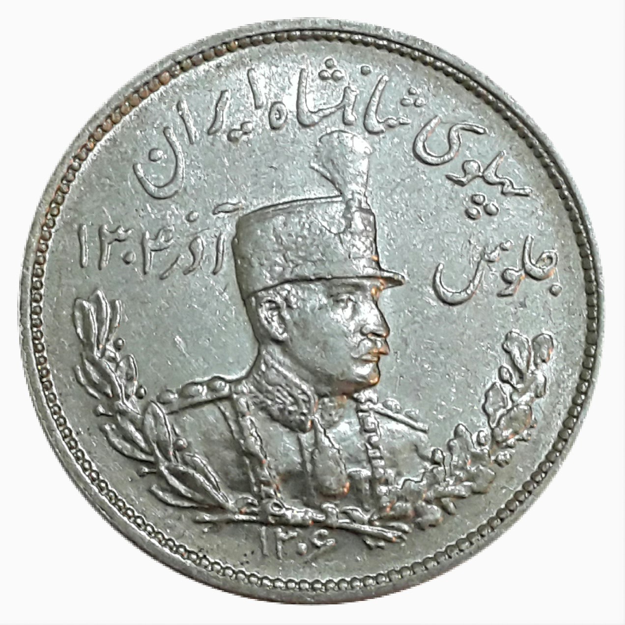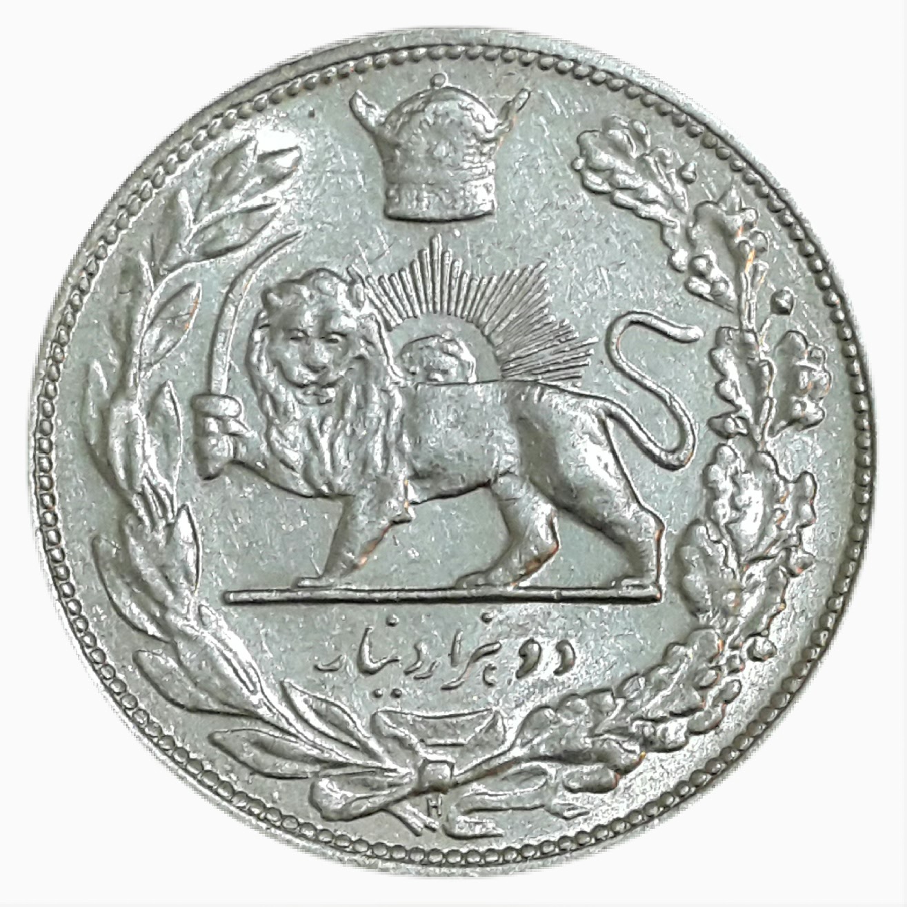 دو هزار دینار نقره تصویر رضا شاه __ 1306 ضرب هیتون