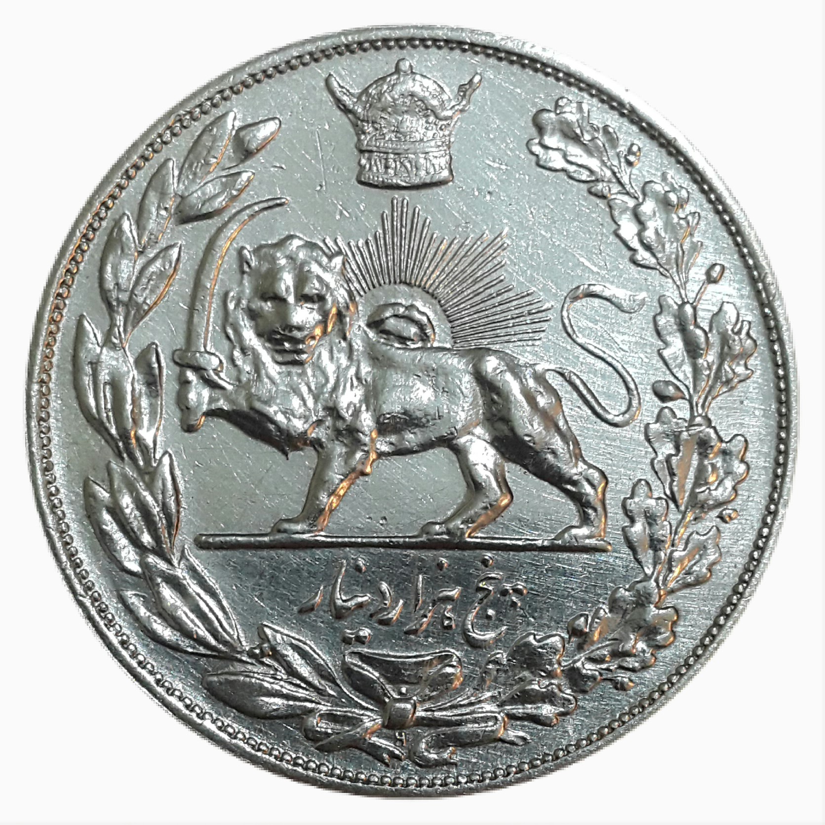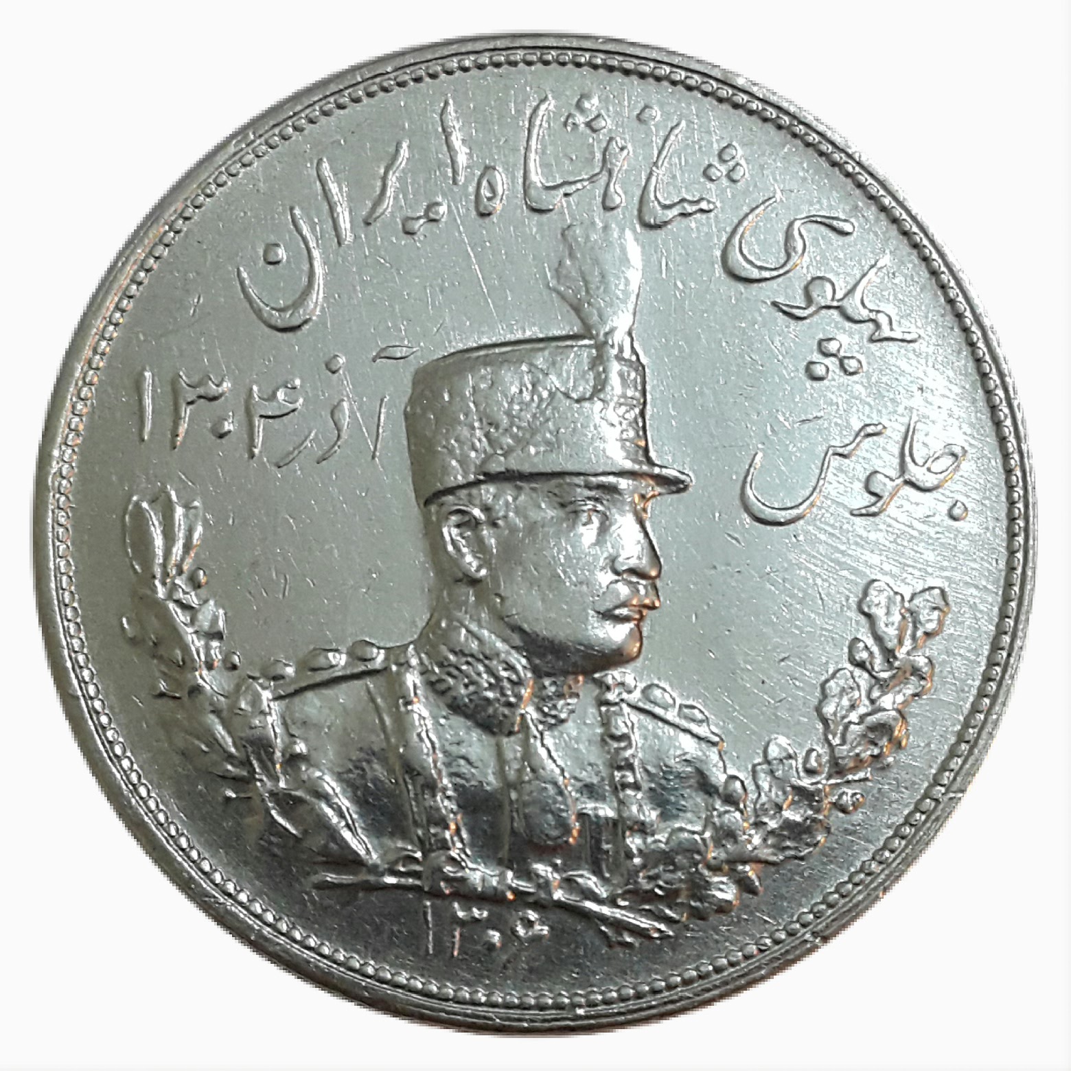 پنج هزار دینار نقره رضا شاه __ 1306 ضرب هیتون
