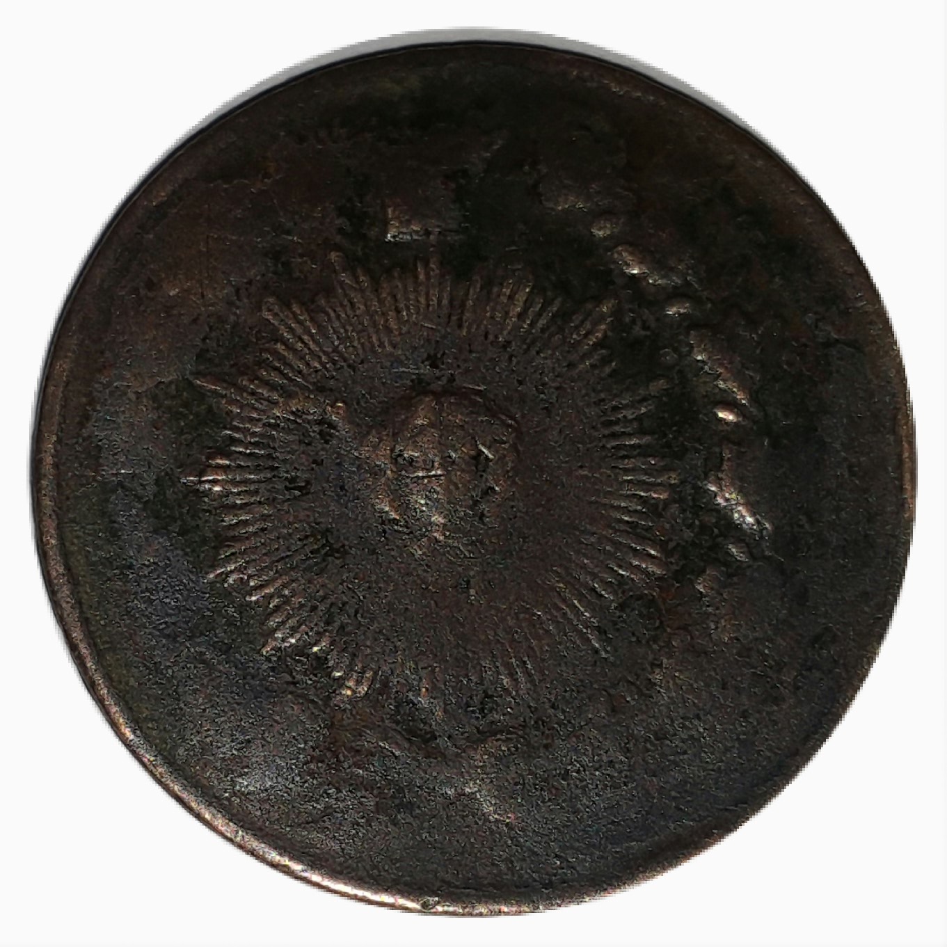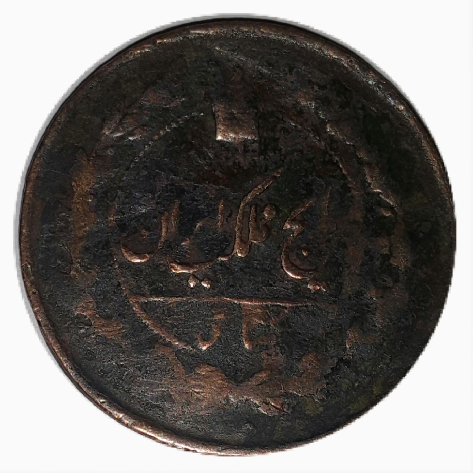 یکشاهی مسی ناصرالدین شاه __ چرخش 180 درجه