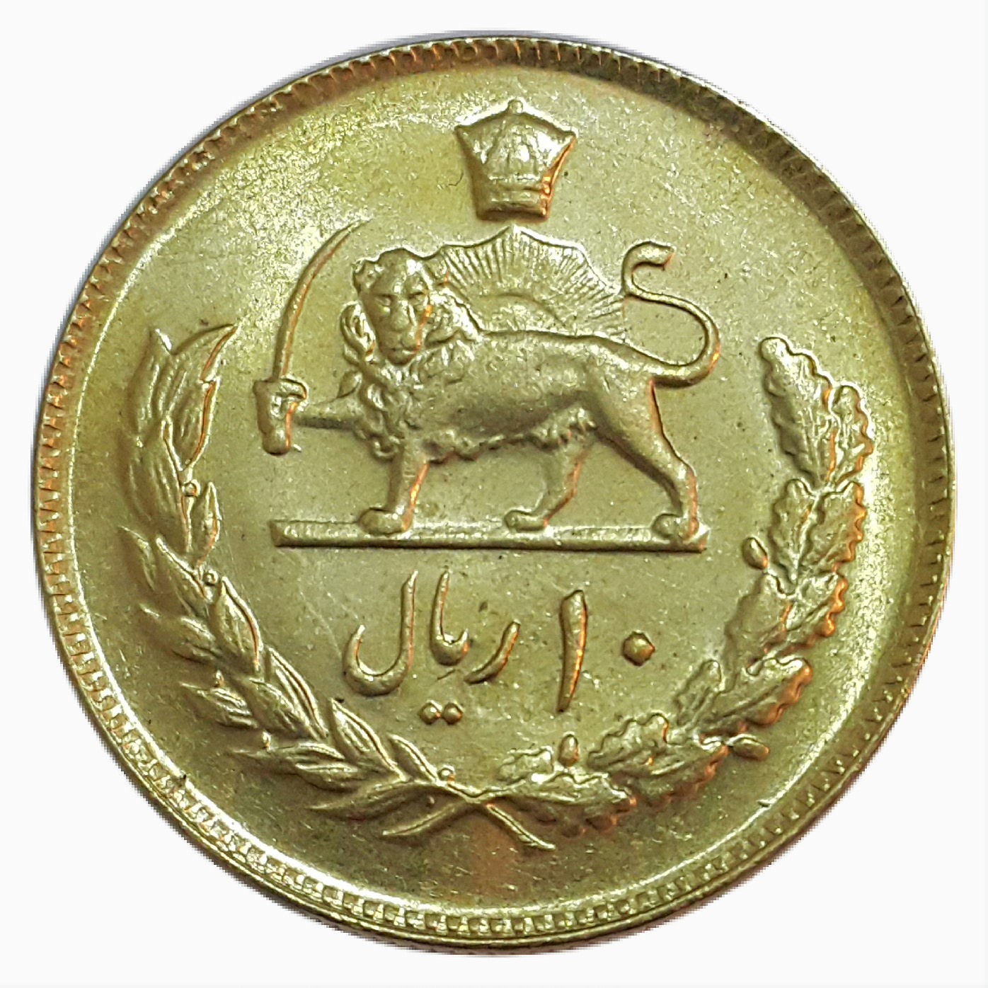10 ریال نیکل محمد رضا شاه آبکاری طلا شده __ 2537