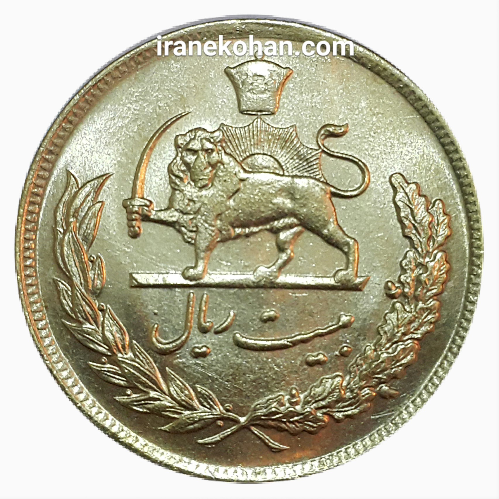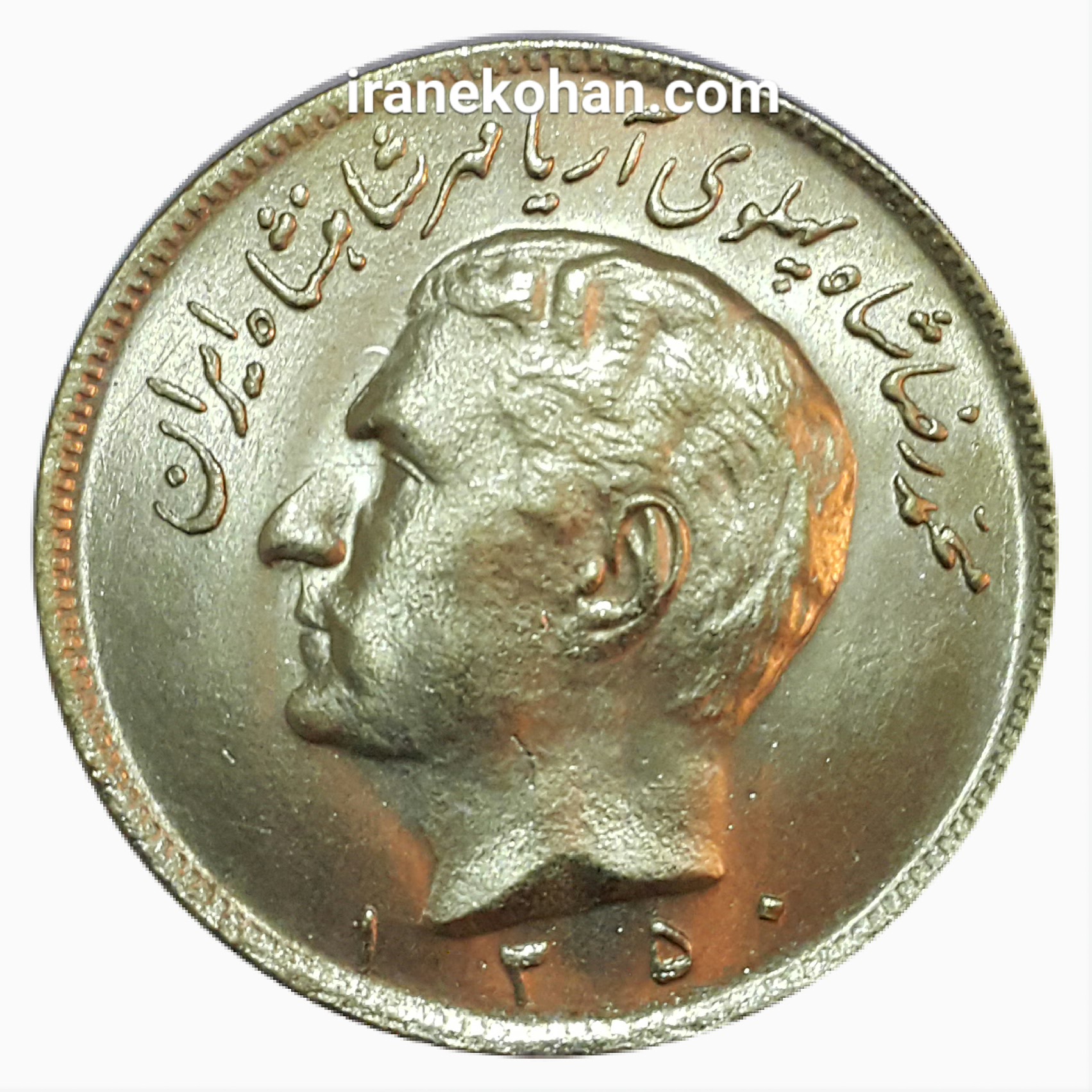 20 ریال نیکل پشت حروف محمد رضا شاه آبکاری طلا شده __ 1350