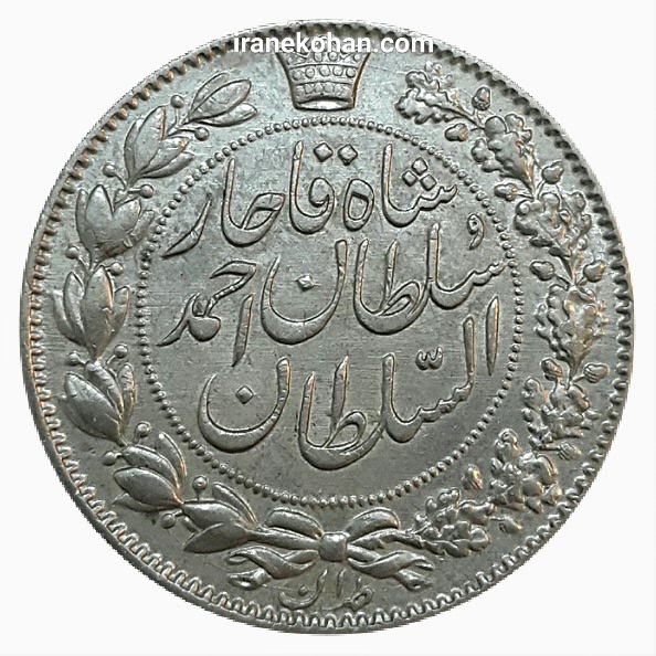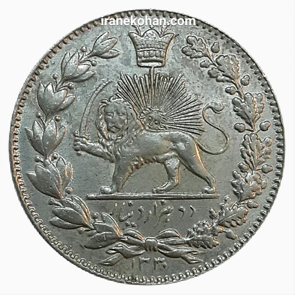 2000 دینار نقره احمد شاه __ 1330__ صورت شیر متفاوت