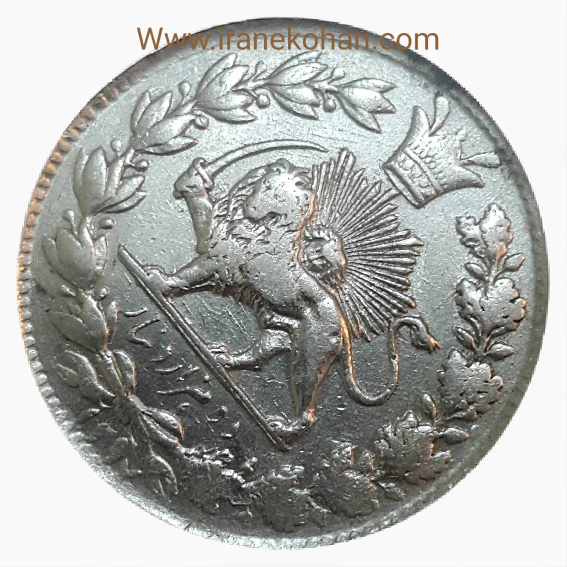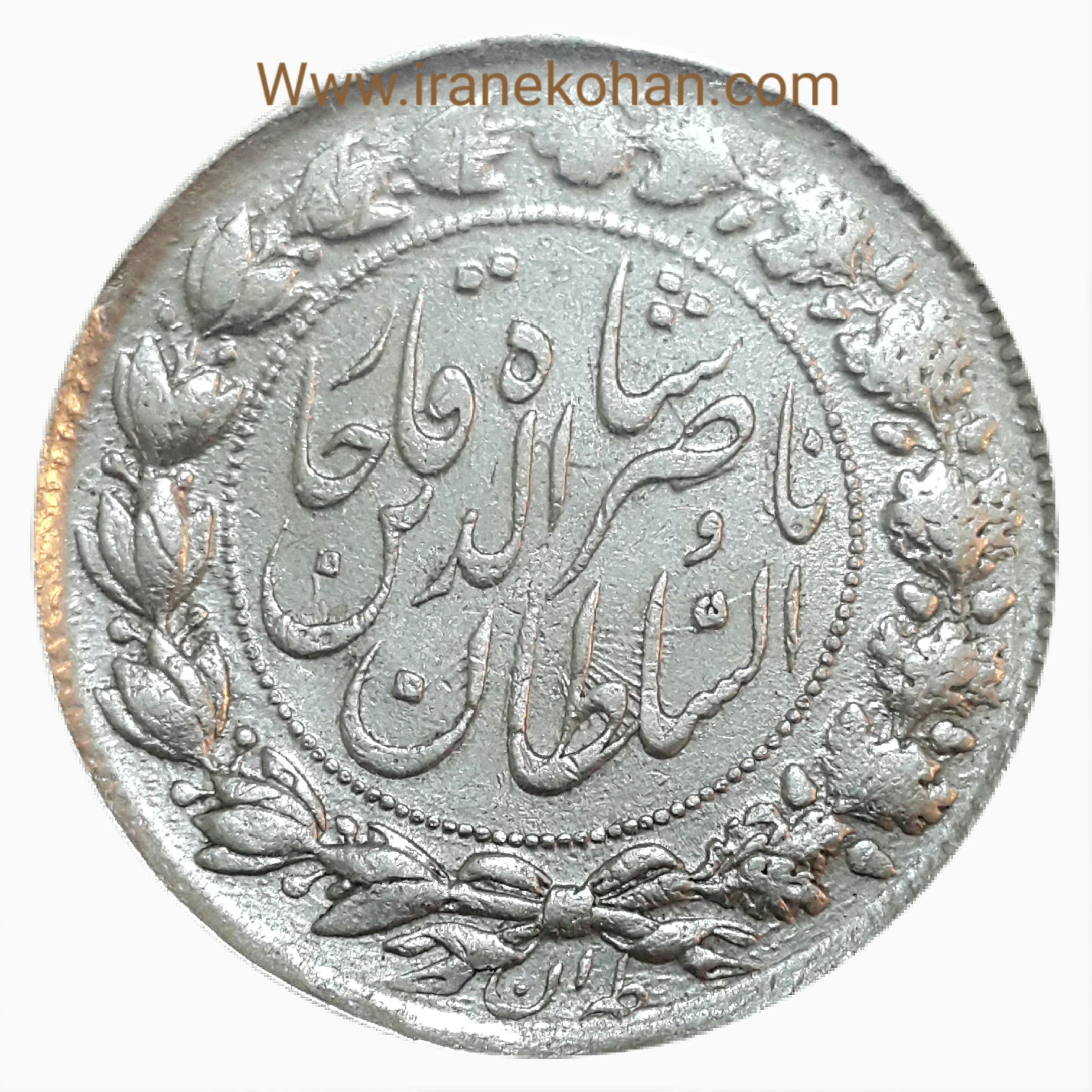 2000 دینار نقره ناصر الدین شاه قاجار _1297 ( چرخش 45 درجه )