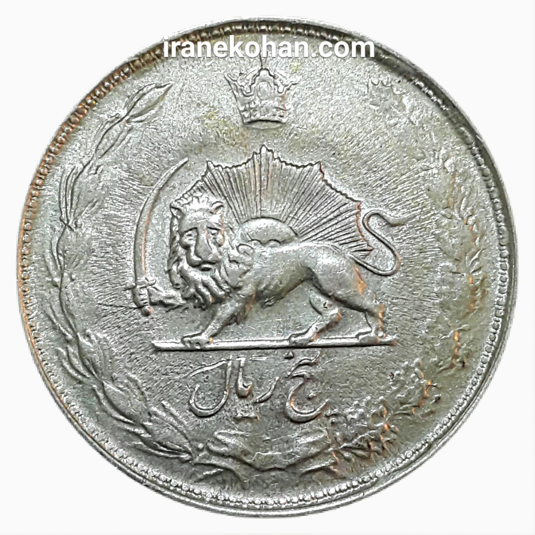 | شرح پشت : برگ بلوط و زیتون – تاج – شیر و خورشید- و مبلغ سکه | Reverse : Oak and Olive leaves, Crown, Lion & Sun, value |