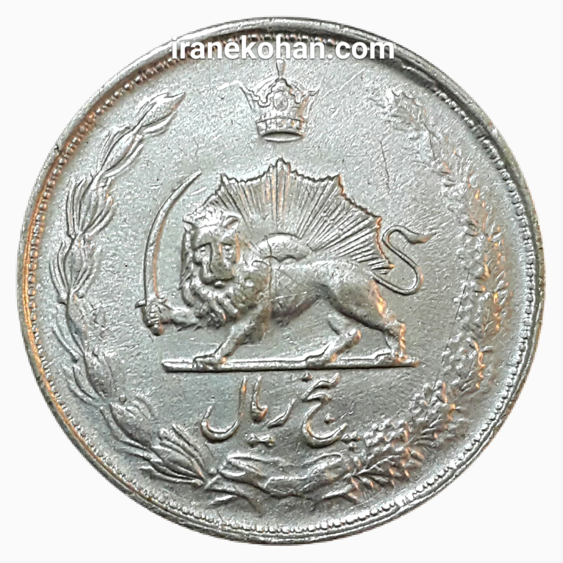 | شرح پشت : برگ بلوط و زیتون – تاج – شیر و خورشید- و مبلغ سکه | Reverse : Oak and Olive leaves, Crown, Lion & Sun, value |