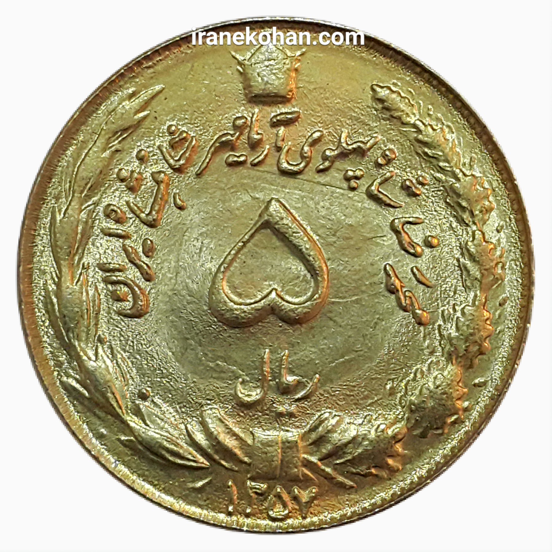 5 ریال نیکل _ آبکاری طلا شده _ محمد رضا شاه __ 1357