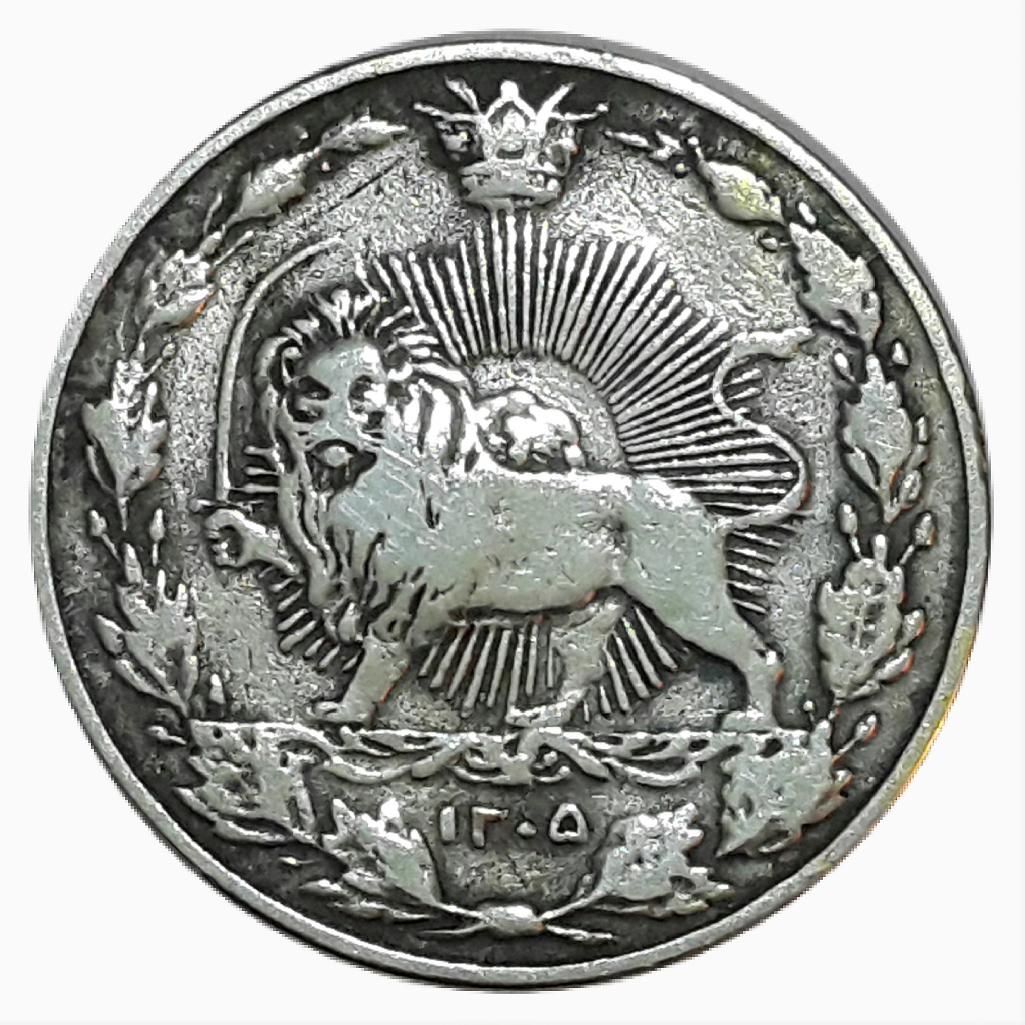 | شرح پشت :برگ بلوط و زیتون – تاج – شیر و خورشید – مبلغ به حروف | Reverse : Oak and Olive leaves, Crown, Lion & Sun, value in word |